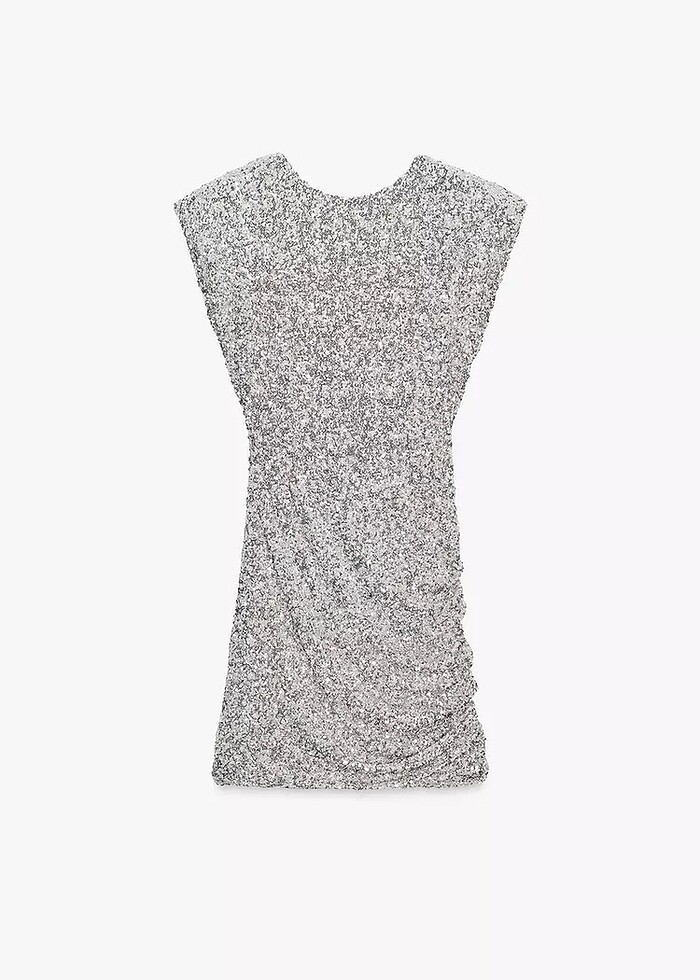 Zara Gümüş Rengi Pullu Elbise