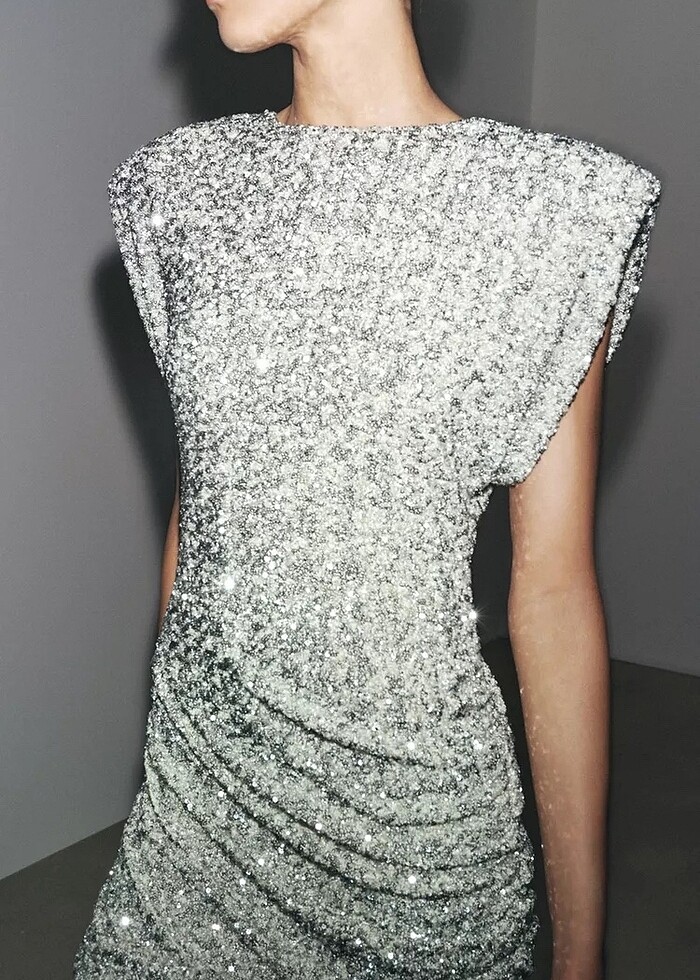 Zara Gümüş Rengi Pullu Elbise
