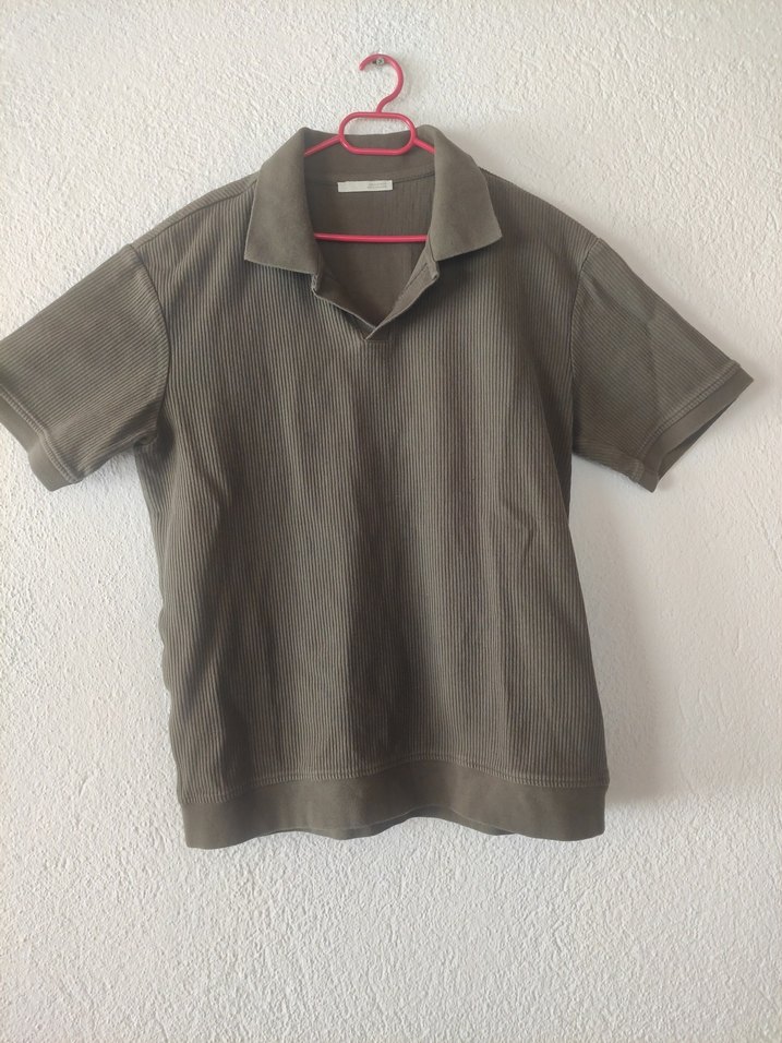 Haki renkte, pamuktan yapılmış, yakalı ve kısa kollu erkek polo tişört. Rahat kesimi ve sade tasarımıyla günlük ve sokak stiline uygundur. Ürün ZARA mağazadan alındı. *8-9 kere falan giyildi. *Tertemizdir, defosu yırtık vs. Hiçbir şey yoktur. *M beden. Haki renktir. *Düğmesiz Polo Yakadır.