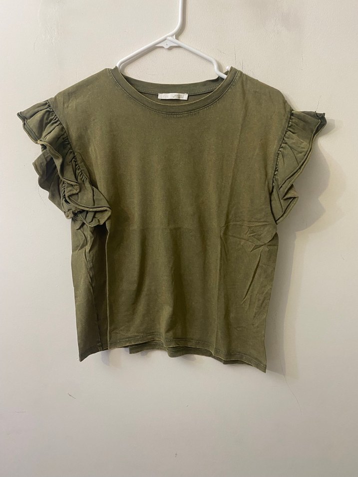 Zara Haki Keten Fırfırlı Tişört