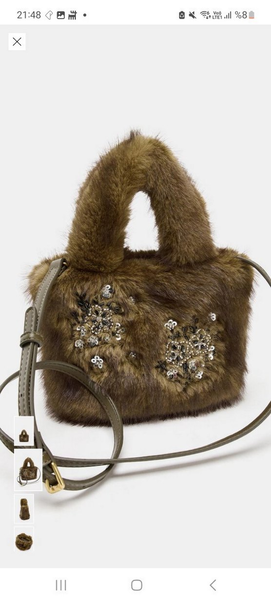 Zara Kahverengi deri çanta, kürk detaylı ve nakışlı desenlere sahip. Günlük kullanıma uygun, bohem ve rahat bir tarz sunar. Ayarlanabilir askılı.