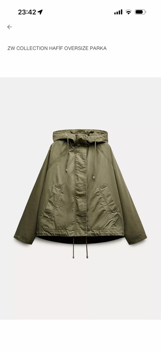 Zara haki renk oversize parka