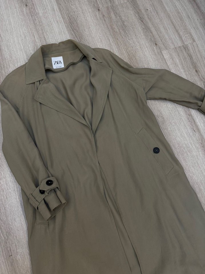 ZARA Haki Uzun Kadın Trençkot Düğmeli