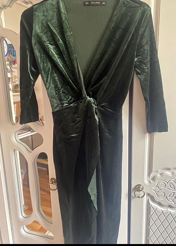 Zara haki yeşil kadife elbise temizdir yarım koldur midi boydur