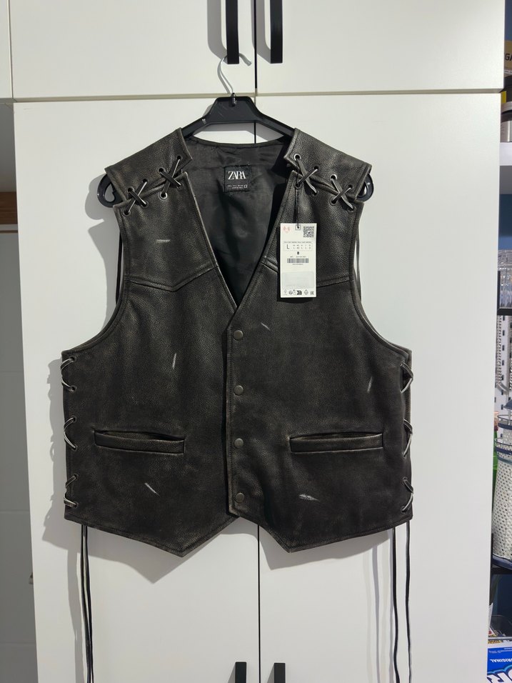 Zara Hakiki Deri Vintage Görünümlü Yelek