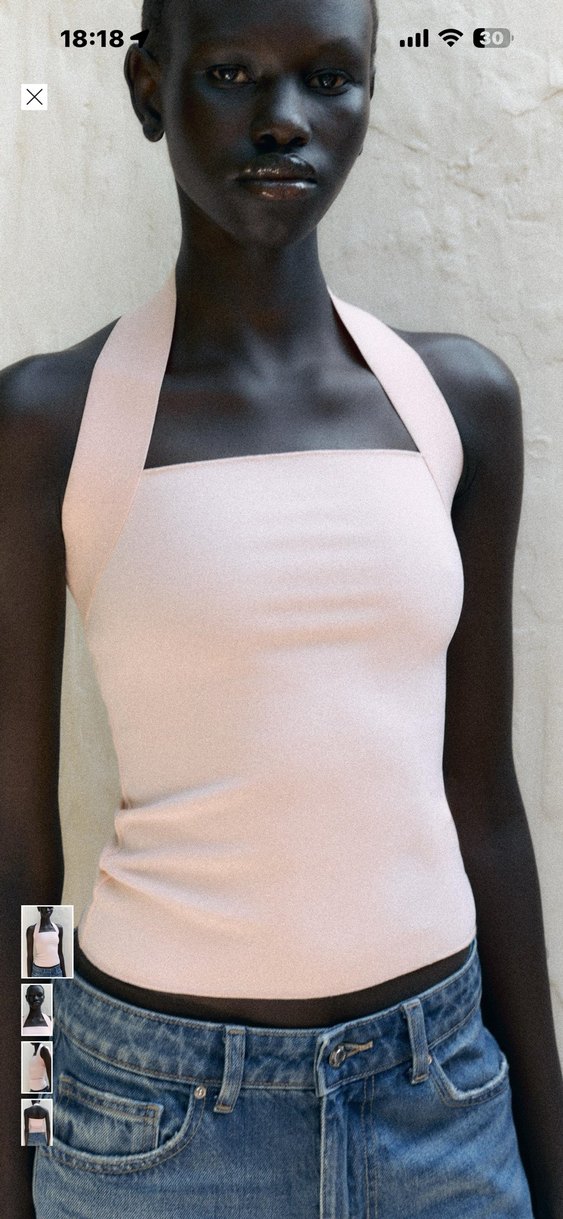 Pembe mini uzunlukta, straplez halter yaka ve ince askılı, vücuda oturan kadın atlet. Yumuşak sentetik kumaştan, minimal ve çağdaş tarzda günlük kullanım için uygundur. ✨
