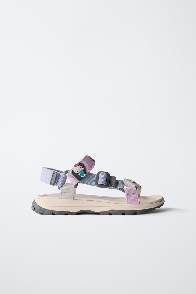 Çok renkli, bağcıklı platform topuklu cocuk sandalet. Pastel tonlarda bağları ve dayanıklı kauçuk malzemesiyle günlük kullanıma uygun.