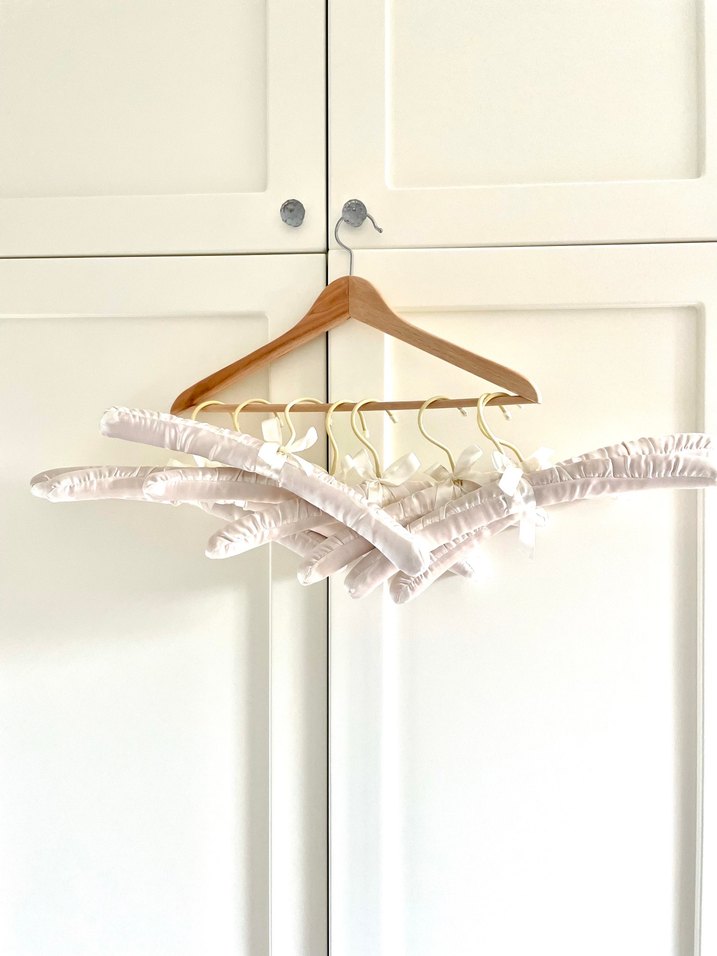 Yumuşak kumaş kaplı beyaz askı seti, hassas kıyafetleri korumak için uygundur. Dolap düzeni için idealdir. Az kullanıldı temiz. 8 adet. İncelenince bazı yerlerde satende minik bozulmalar var ip çekmesi gibi, örnek foto koydum fakat çok belli değiller incelenince görünüyor.
