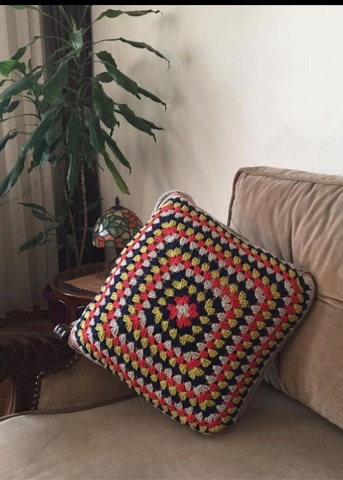 El örgüsü çok renkli yastık ve içi, hiç kullanılmamıştır, satış için örülmüştür,marka temsilidir