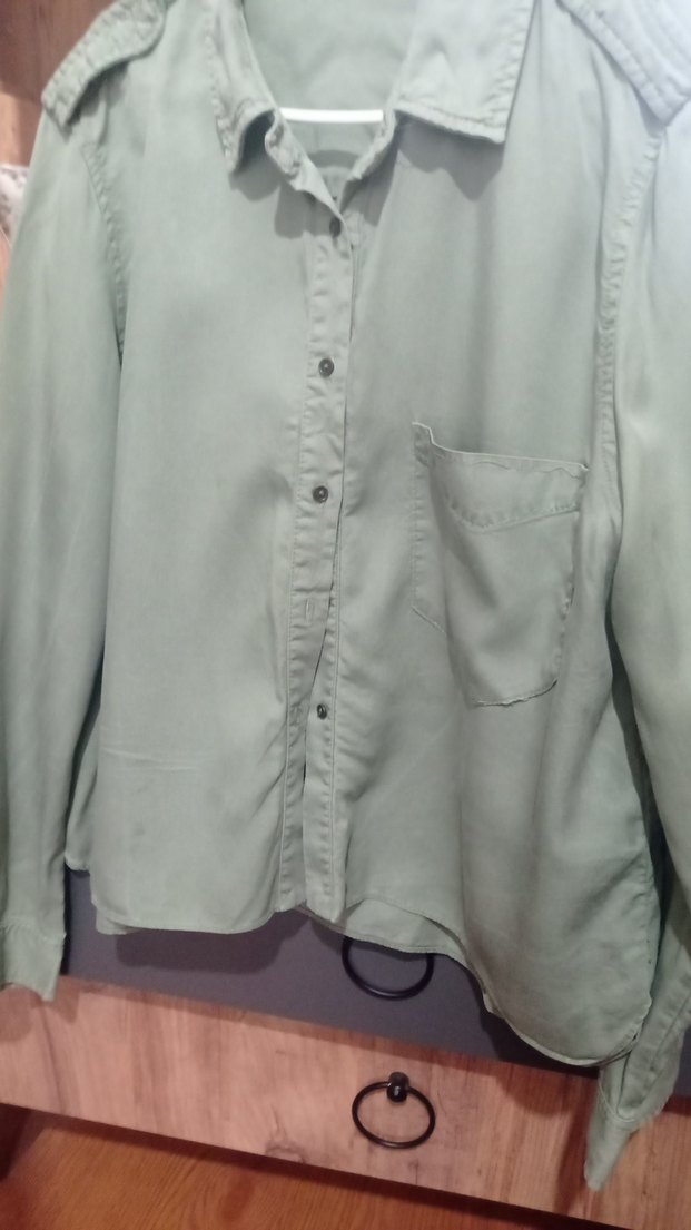 Yumuşak keten kumaştan, düğmeli ve uzun kollu, yakalı, bol kesim haki gömlek. Günlük sokak stili için uygundur.ütüsüz o yüzden böyle duruyor çok şık gömlek
