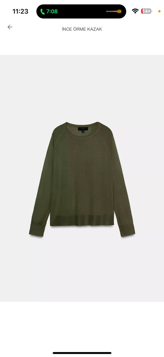 Zara ince örme haki yeşil kazak,etiketlidir,ürün orjinaldır hiç giyilmemiştir,sorunsuz,ürün kodu 1509/105/500