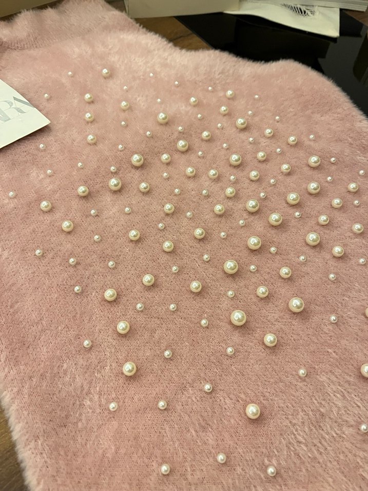 Zara inci işlemeli tüylü örgü bluz etiketli