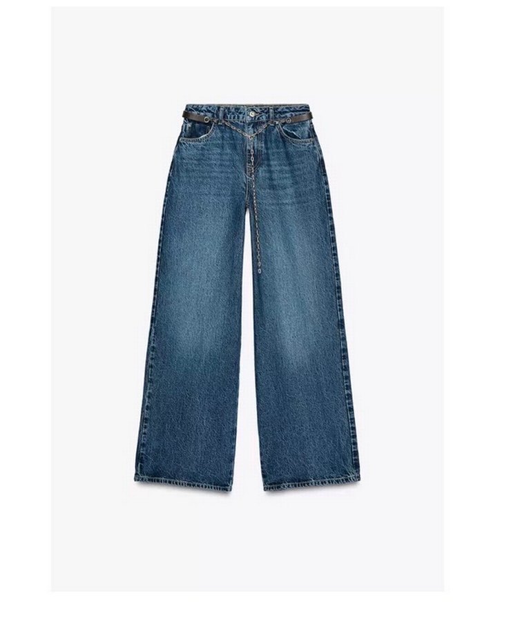 Kadınlar için lacivert denim pantolon, normal kesim ve midi boy. Kemerli bel ve desen içermeyen sade tasarımla günlük kullanıma uygun. 0 ürün nerdeyse 1 kere giyildi kemerli