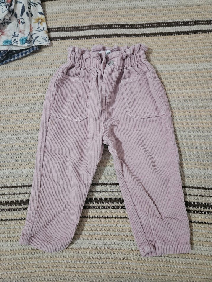 Mor renkte, pamuklu pilili bol kesim kız çocuk pantolonu, ön ceplerle ve pastel tonlarda şık bir günlük tarz sunar.