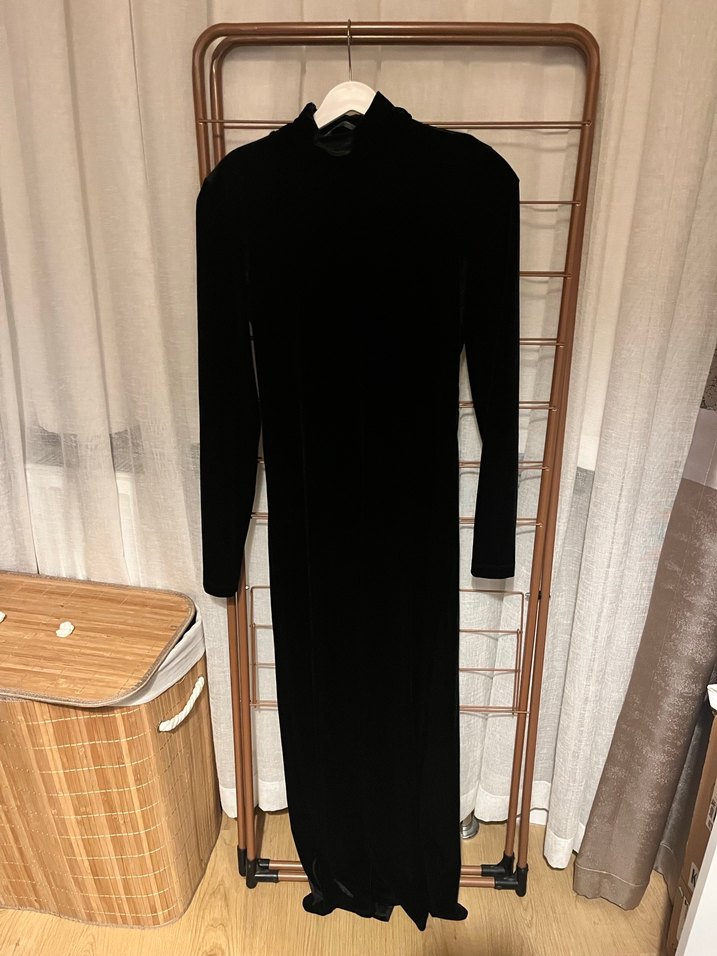 Zara kadife sırtı acık kadife Siyah Kadın Elbise