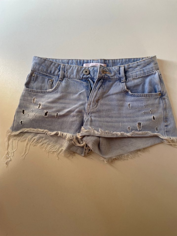 Zara Kadın açık mavi Mini Düğmeli Denim Şort