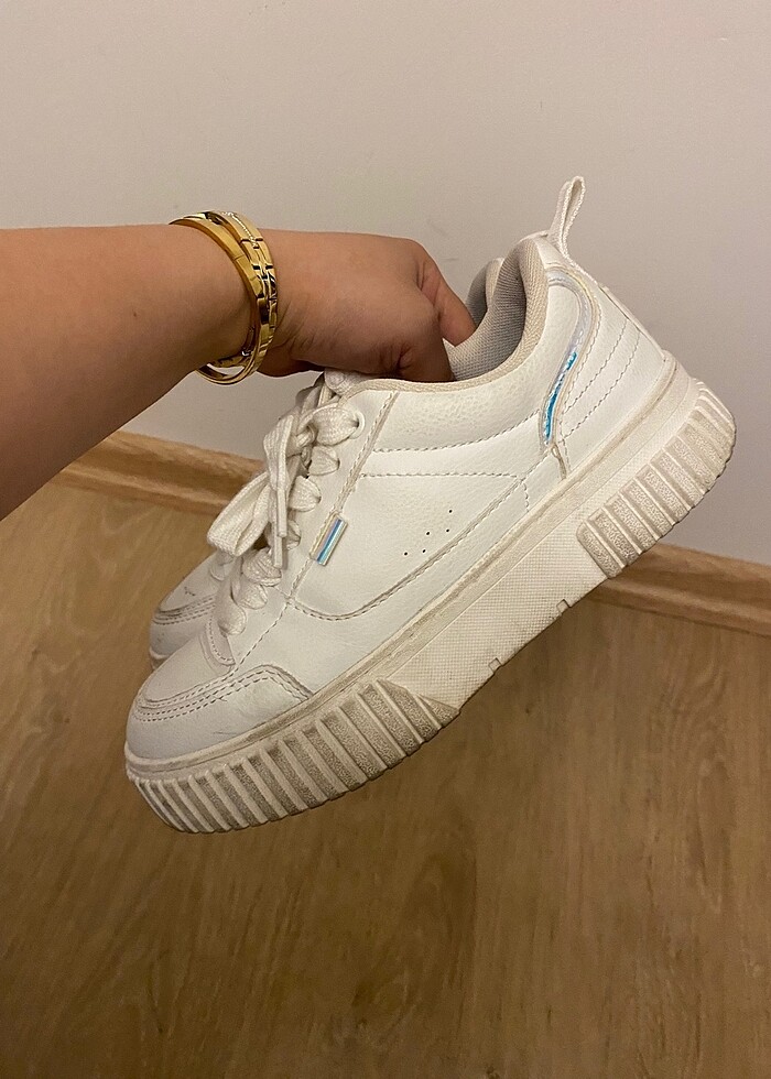 Kalın tabanlı 3 4 cm beyaz 35 numara çok rahat zara spor ayakkabı bi kaç kez giyildi tertemiz defosu vs yok