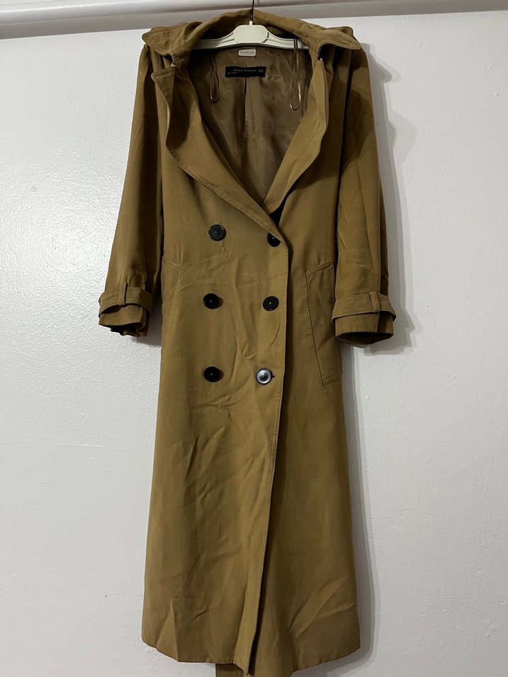 ZARA Kadın Bej Uzun Düğmeli Trençkot