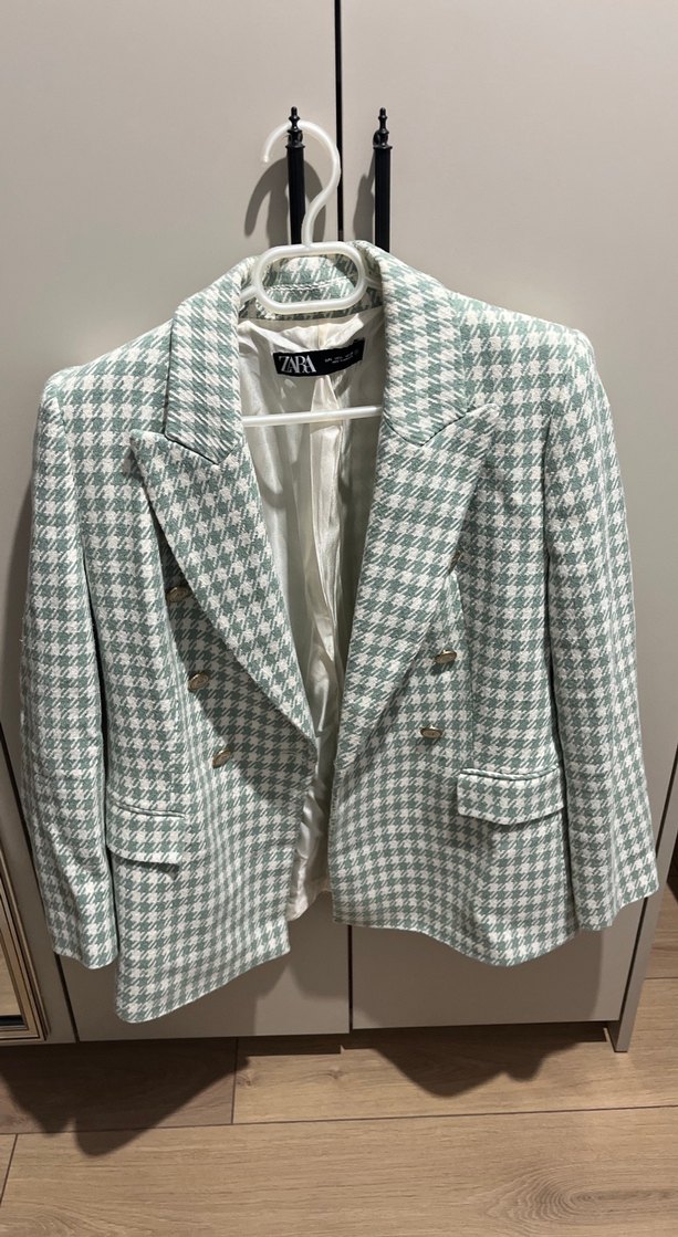 Zara Kadın Beyaz Ekose Blazer Ceket