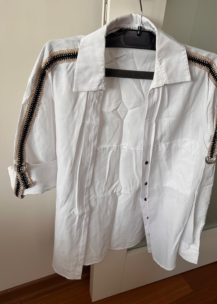 Zara kadın omuzdan şeritli kolları ayarlanabilir XS beden ancak geniş kesim beyaz gömlek sayılı giyilmiştir