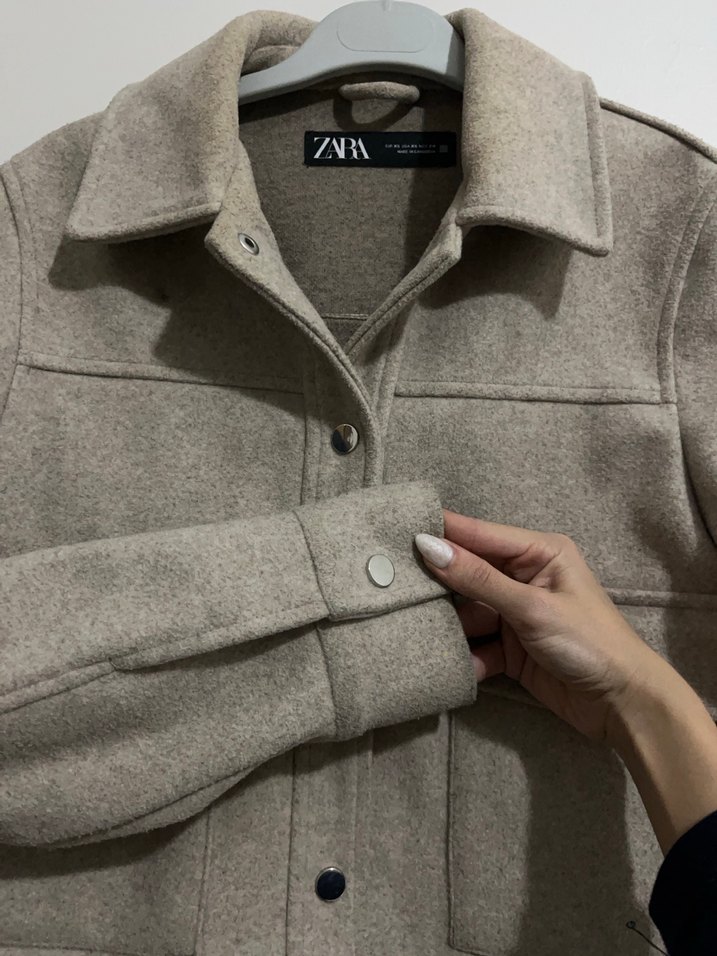 Bej renkli, düğmeli ve yakalı kadın ceket. Yumuşak ve sıcak kumaştan, uzun kollu ve rahat kesimlidir. Birkaç kez kullanılmıştır. Herhangi bir kusuru yoktur. İyi alışverişler dilerim.