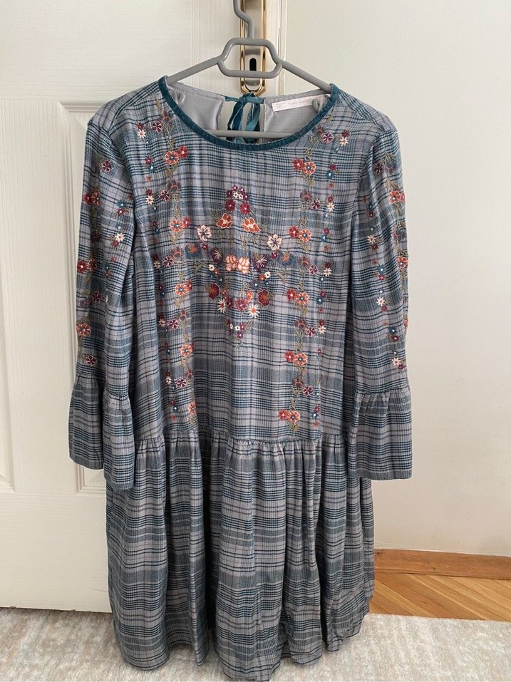 Zara çiçek detaylı yeşil elbise. Ürün sadece 1-2 defa giyilmiştir.