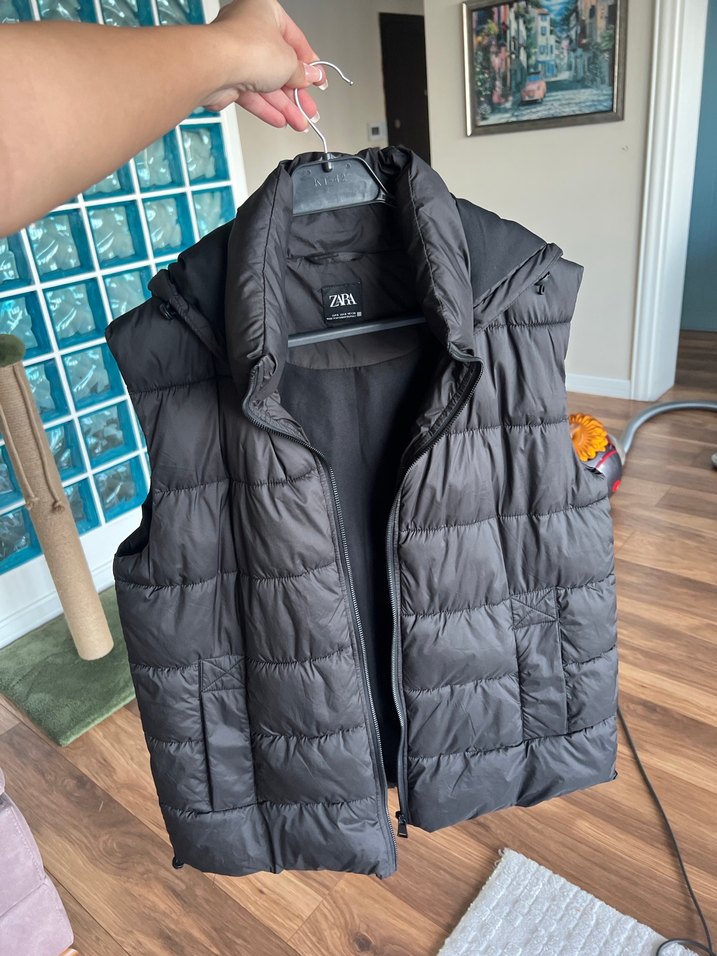 Zara Kadın Gri Fermuarlı Yumuşak Kumaşlı Şişme Yelek