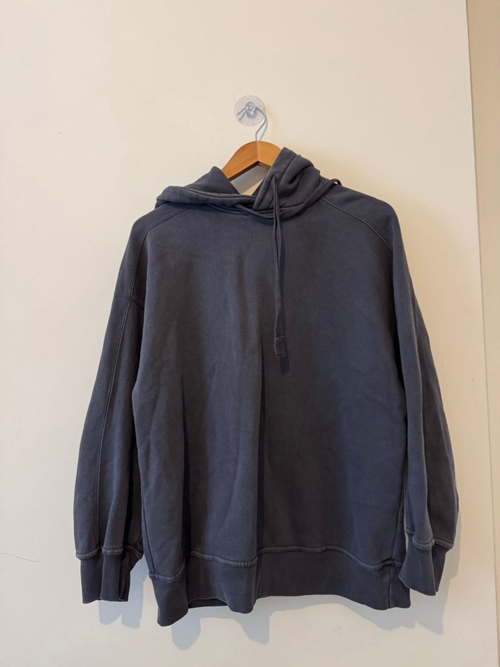 Kadın gri kapüşonlu sweatshirt, salaş kesim ve uzun kollu. Yumuşak ve sıcak kumaştan, günlük kullanım için uygun sade ve şık bir model. Oversize m bedene de olur