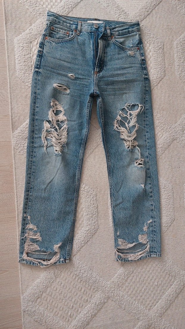 zara Kadın Gri Mavi Yırtık Salaş Kot Pantolon