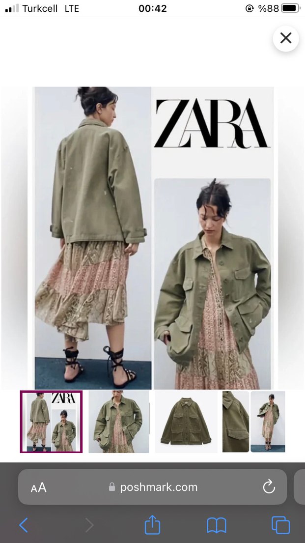 Zara Kadın Haki Kamuflaj Desenli Midi Ceket