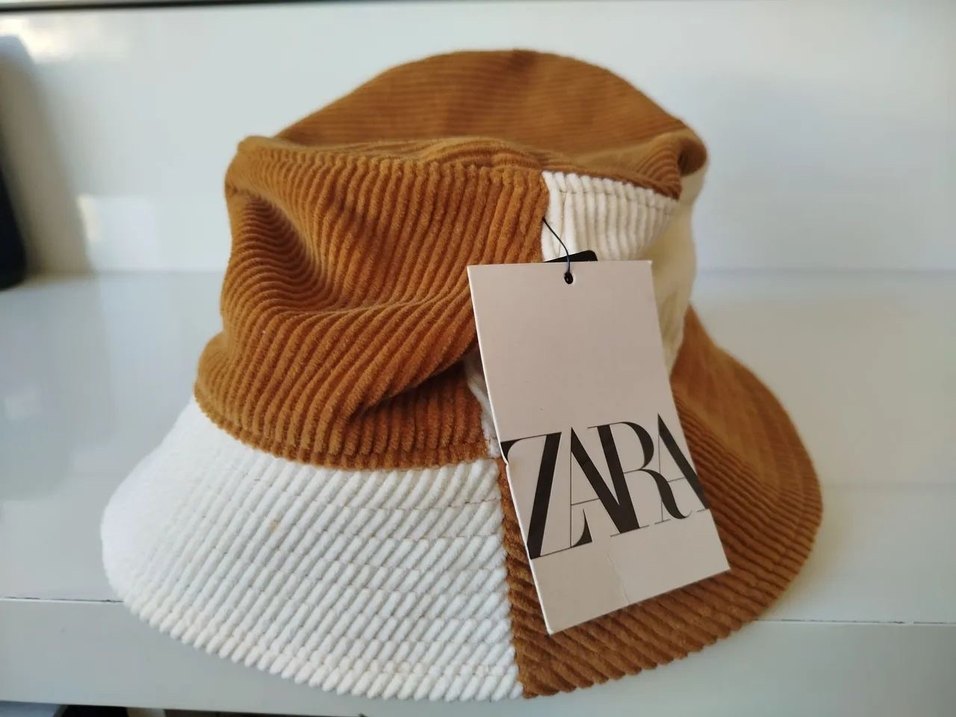 ürün yeni ve etiketli Zara markalı, kadife dokulu, kahverengi ve krem tonlarda kadın şapka. Sokak modasına uygun, yumuşak ve rahat bir tasarıma sahiptir.