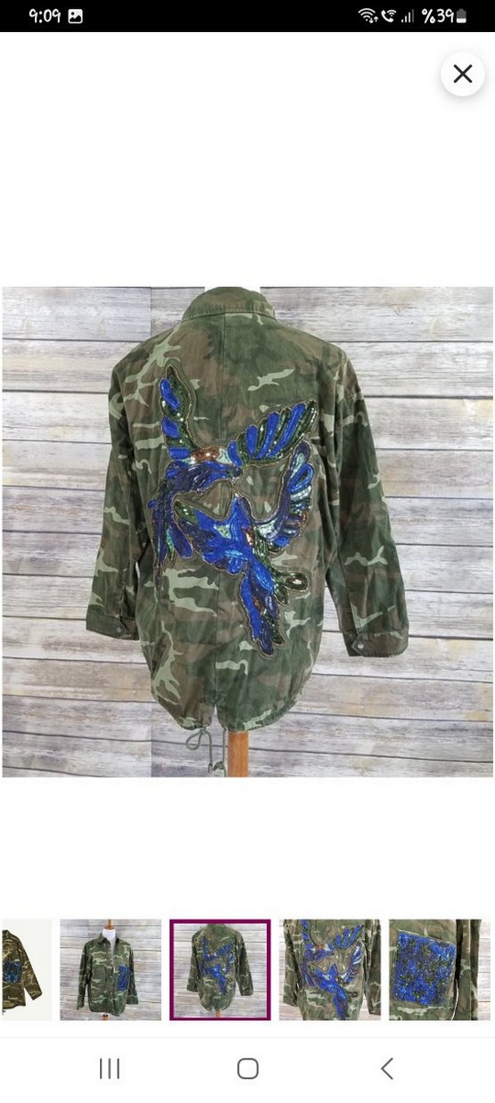 Kadınlar için kamuflaj desenli, düğmeli, uzun kollu ve yuvarlak yakalı rahat kesim ceket. Limited Edition