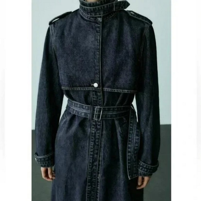 Zara - Kadın Kemerli Mavi Denim Trençkot