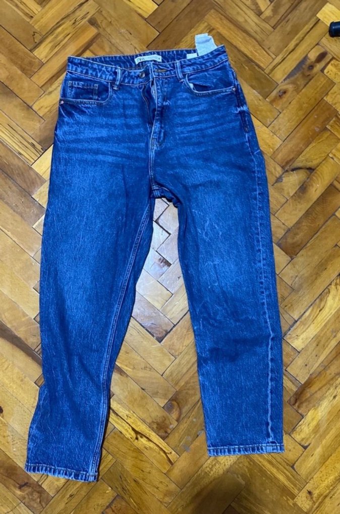 Orijinal zara mağazasından alındı Kadınlar için kemerli, regular fit, koyu mavi batik desenli denim jean. Normal midi boy, rahat günlük sokak stiline uygun.