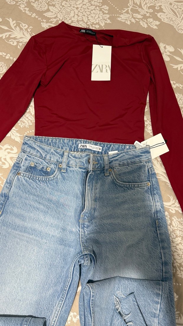 Zara'dan kırmızı, fitted bluz yeni etiketli kalıbı dar