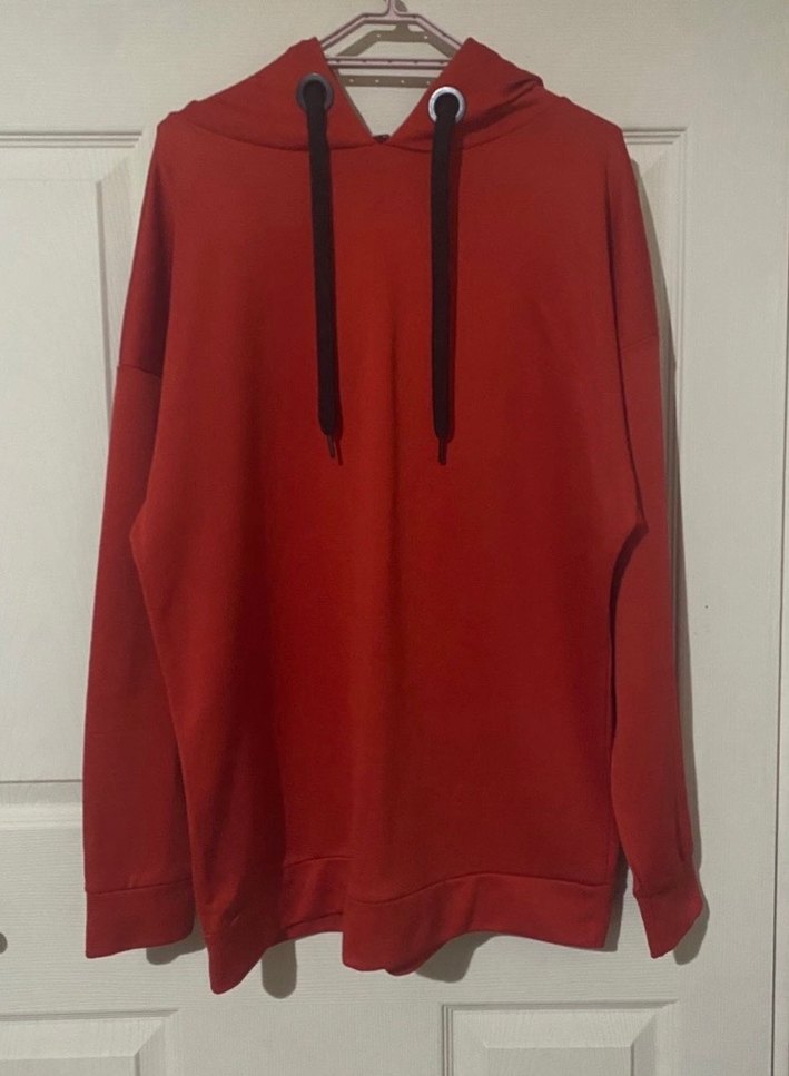 Koyu kırmızı renkte, uzun kollu ve kapüşonlu bol kesim sweatshirt. Yumuşak ve sıcak kumaştan üretilmiştir. Yuvarlak yakalı, rahat ve şık günlük kullanım için uygundur.