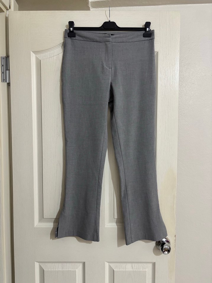 Gri renk, düz desenli kadın kumaş pantolon. Normal boy ve regular fit kesime sahip, ofis kullanımı için uygun. Zara kadın kumaş pantolon M beden uyumlu Yenidir