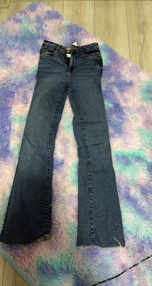 Zara Kadın Mavi Denim Midi Boy Jean Pantolon