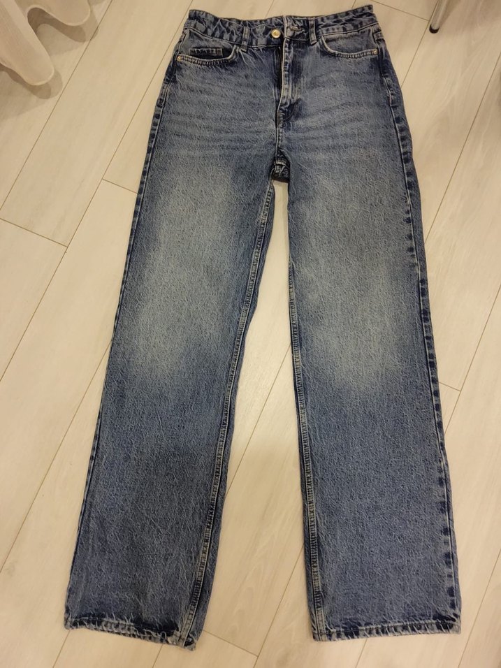 Kadınlar için mavi tonlarda, düz kesim denim pantolon. Desensiz, rahat ve şık sokak stili görünümü sunar. Günlük kullanım için uygundur.