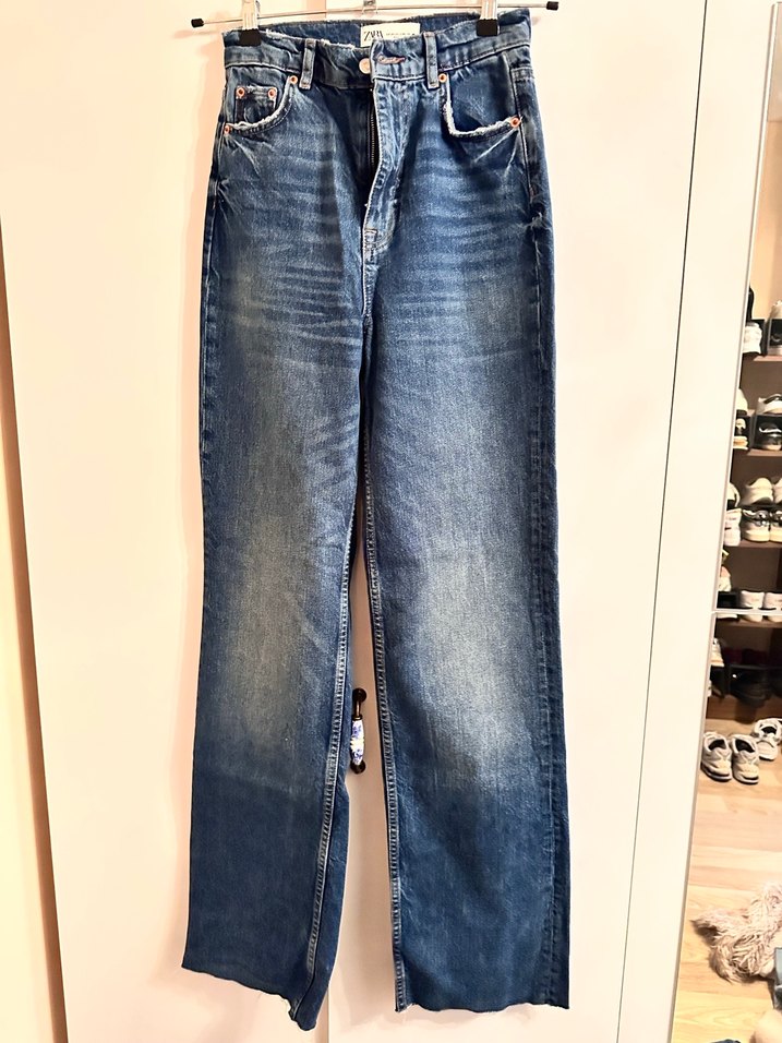 ZARA Kadın Mavi Kot Pantolon - Kemerli, Normal Boy