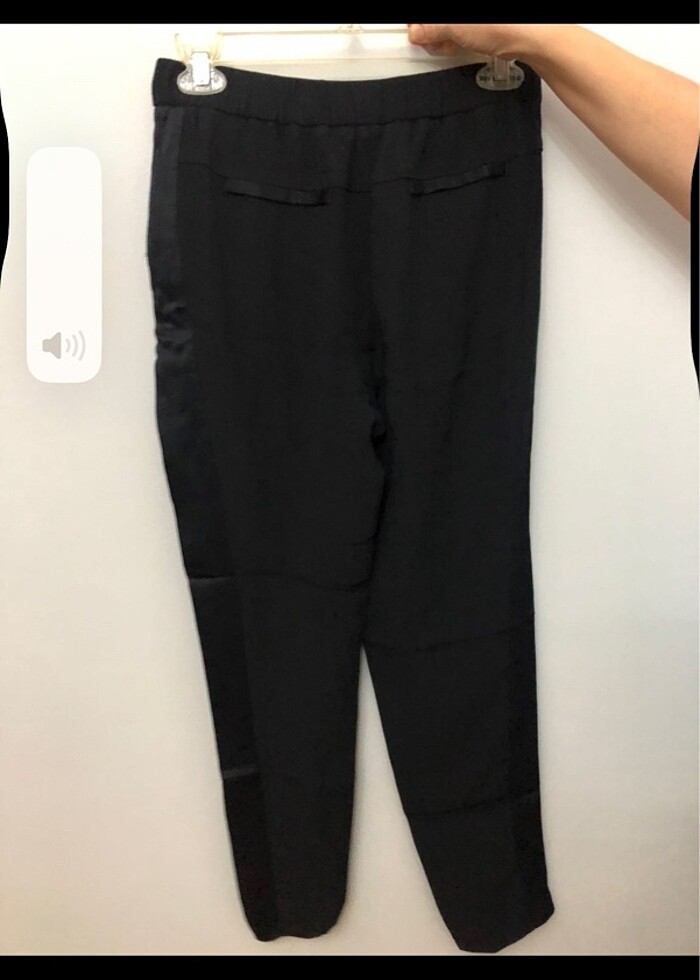 Hiç kullanılmadı yanları saten bant var beli lastikli paça kısmı sökük boyu ayarlanıp dikilebilir çok şık bir pantolon