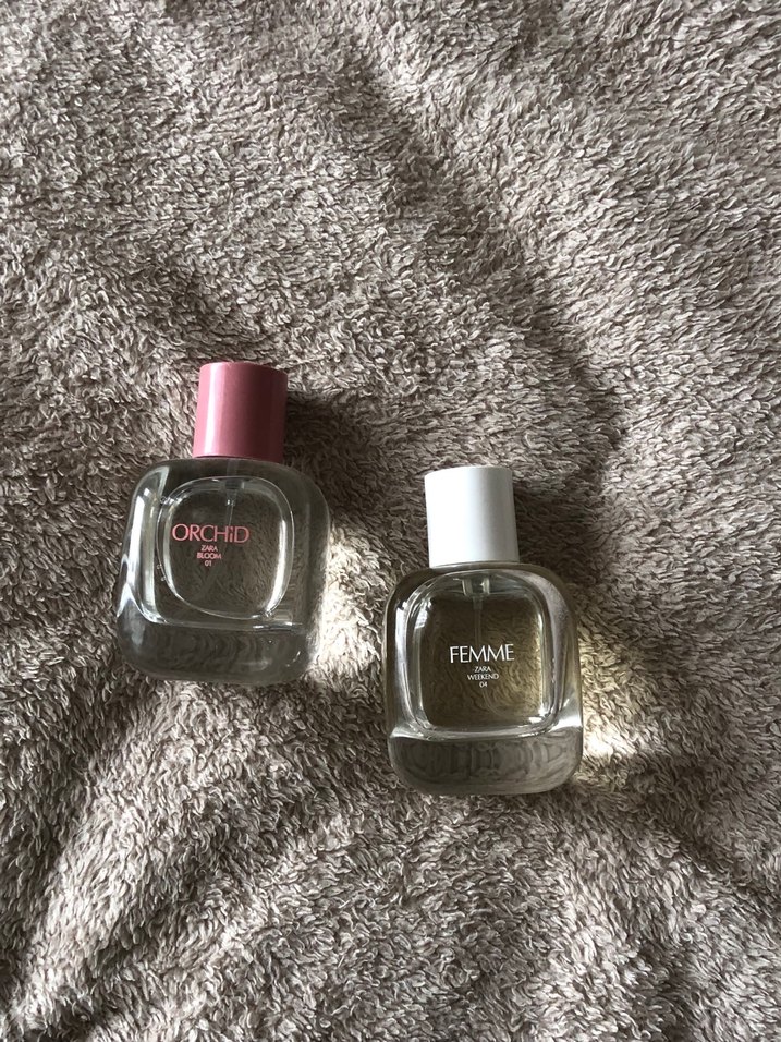 Femme/ Orchid kadın parfümü, beyaz kapaklı şeffaf cam şişede, hafif ve zarif bir koku sunar.