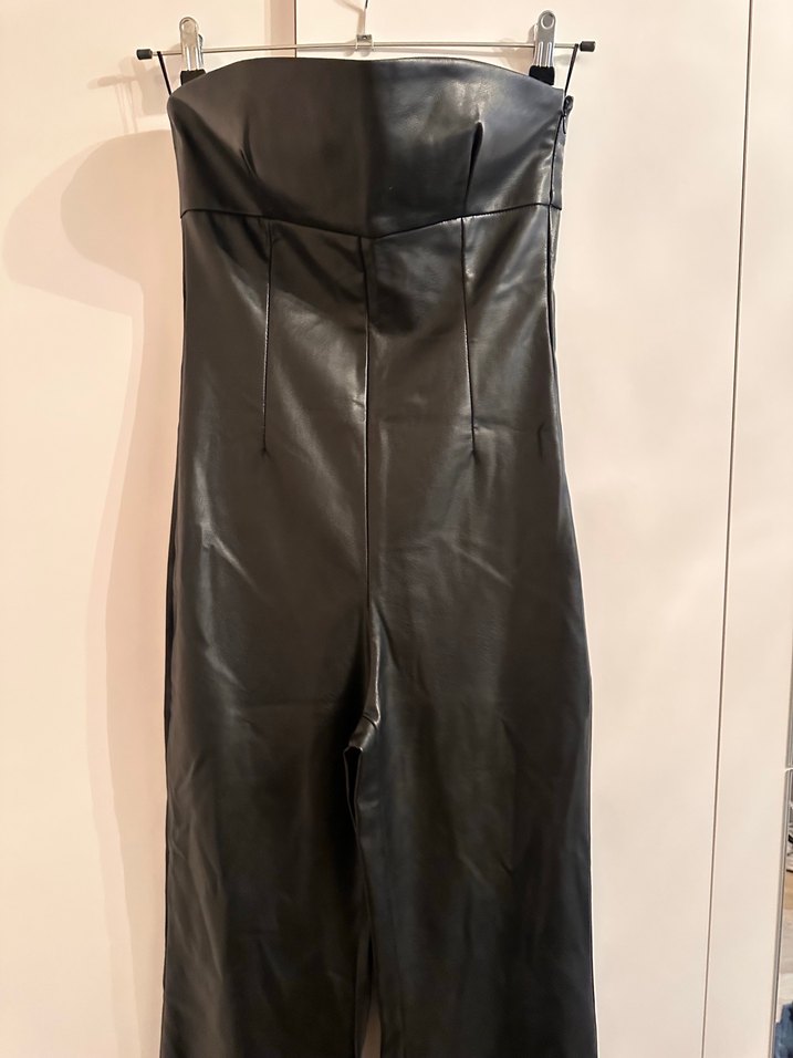 ZARA Kadın Siyah Deri Uzun tulum