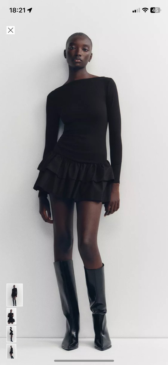 Zara Kadın Siyah Fırfırlı Mini Elbise