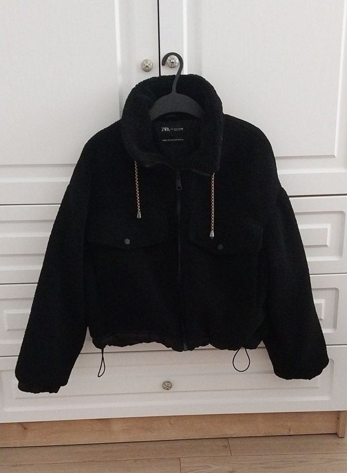 Zara Kadın Siyah Kürklü Polar Mont M beden