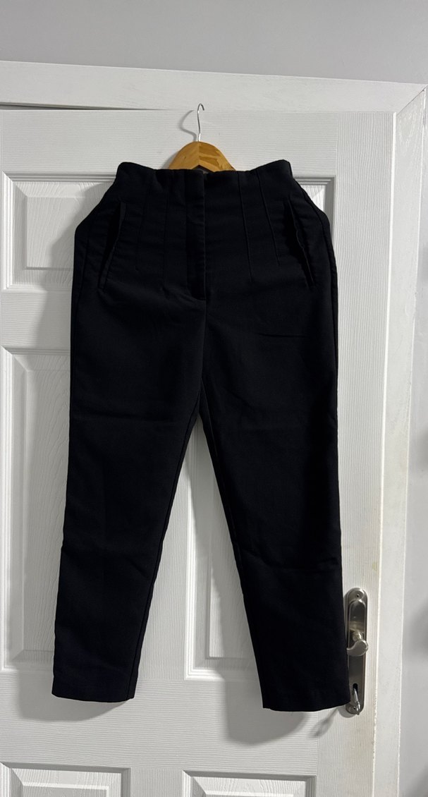 Zara Kadın Siyah Pilili Midi Kumaş Pantolon