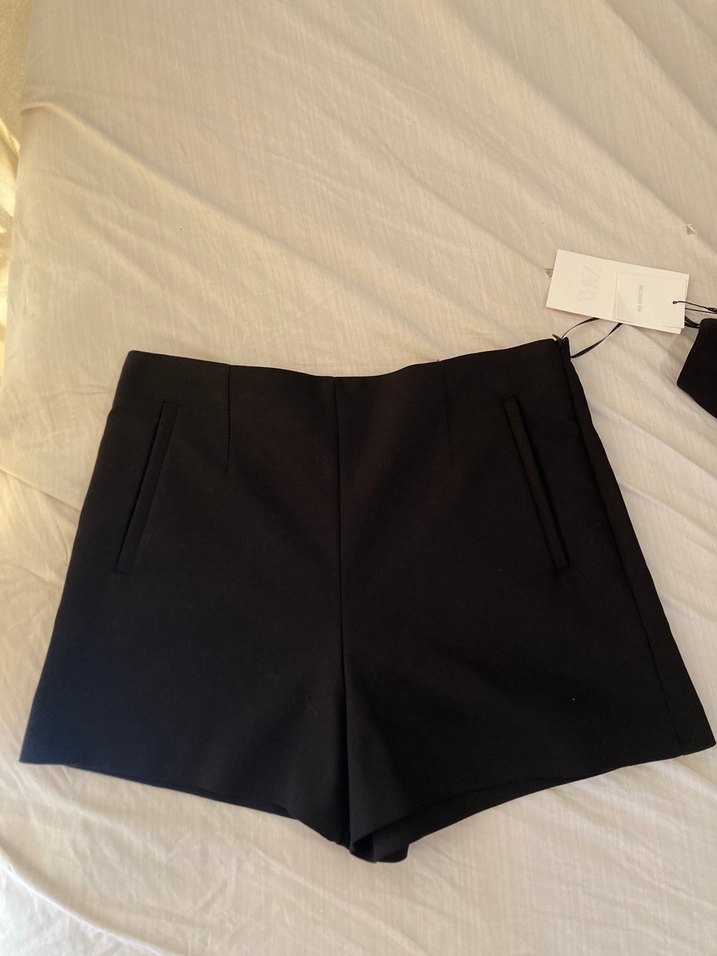 Siyah, yandan gizli fermuar detaylı, vücuda oturan minimalist mini etek.
