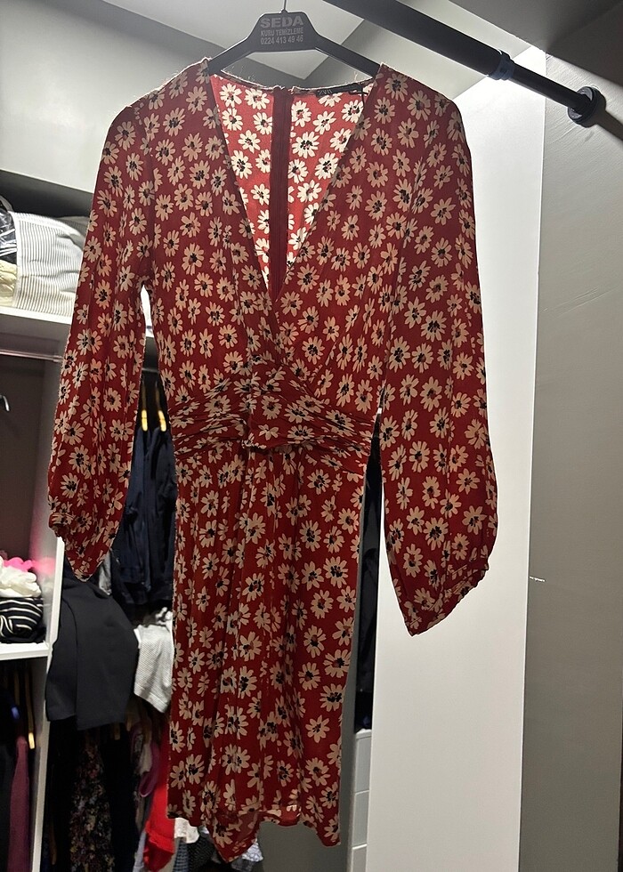 Saten, S beden mini tulum. Bir kez giyildi, beden uymadığı için satışta