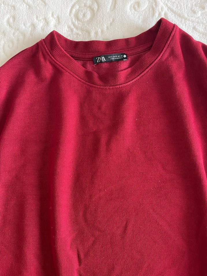 Yumuşak ve sıcak kumaştan üretilmiş, yuvarlak yakalı ve uzun kollu, bol kesim kırmızı kadın body. Günlük kullanım için uygun, sade ve renkli tasarım.