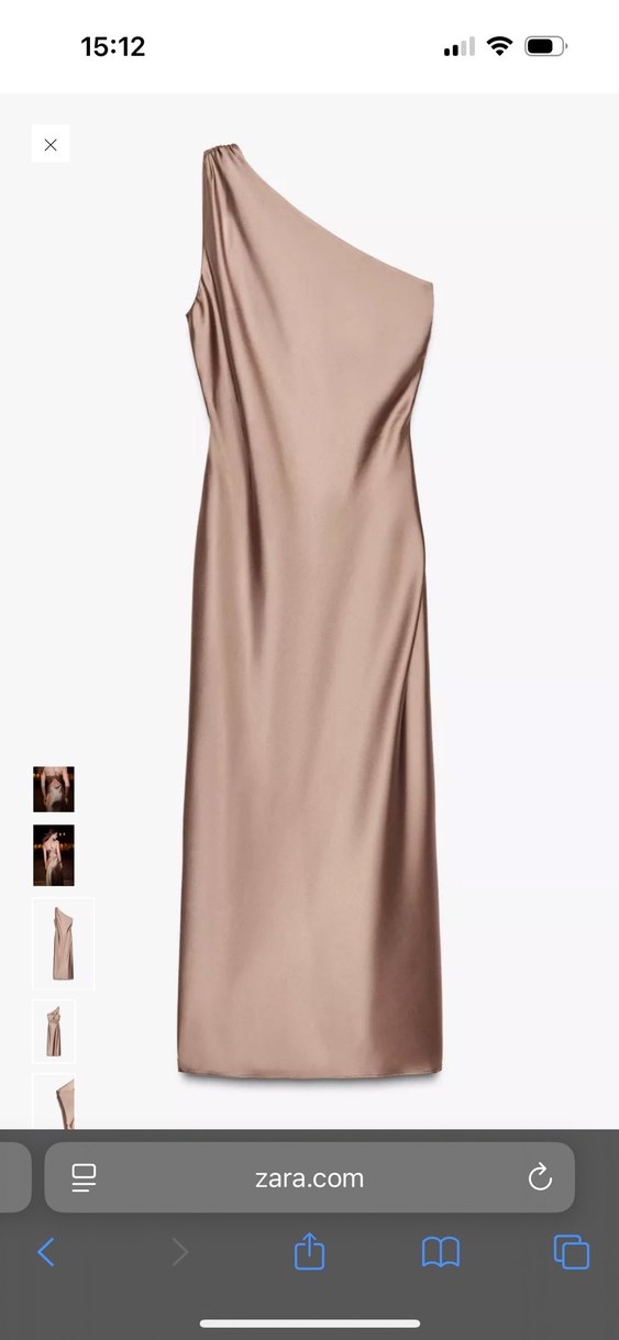 Kahve renkte, saten dokulu, drapeli ve tek omuz yaka kolsuz uzun elbise. Düzenli kesimi ve minimalist, çağdaş tarzıyla romantik akşamlar için uygun. Zara dan alındı 1 kez düğünde giyildi.normalde m beden giyiniyorum xs olan bu elbise bana oldu